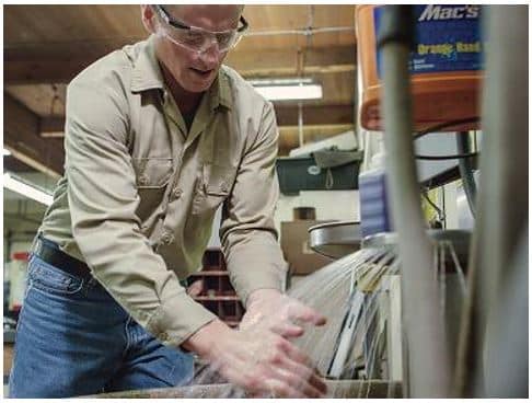 Your employer must provide readily accessible handwashing facilities, antiseptic hand cleanser, or wipes if handwashing facilities are not available. Place contaminated protective equipment in appropriately designated areas or containers for cleaning or disposal. Remove contaminated gloves by turning them inside out. Be careful to prevent splashing or spraying of blood and other body fluids. Never wash or decontaminate disposable gloves for reuse.